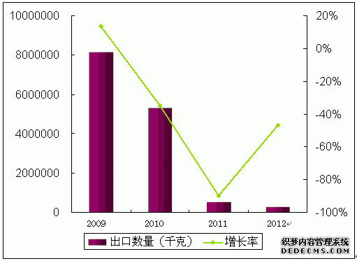 2009-2012年塑料水箱出口數(shù)量及增長率
