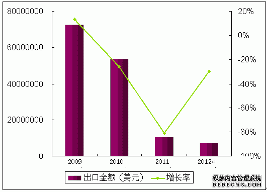 2009-2012年塑料水箱出口金額及增長率