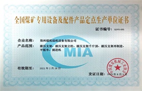 全國煤磚專用設備及配件產(chǎn)品定點生產(chǎn)單位證書